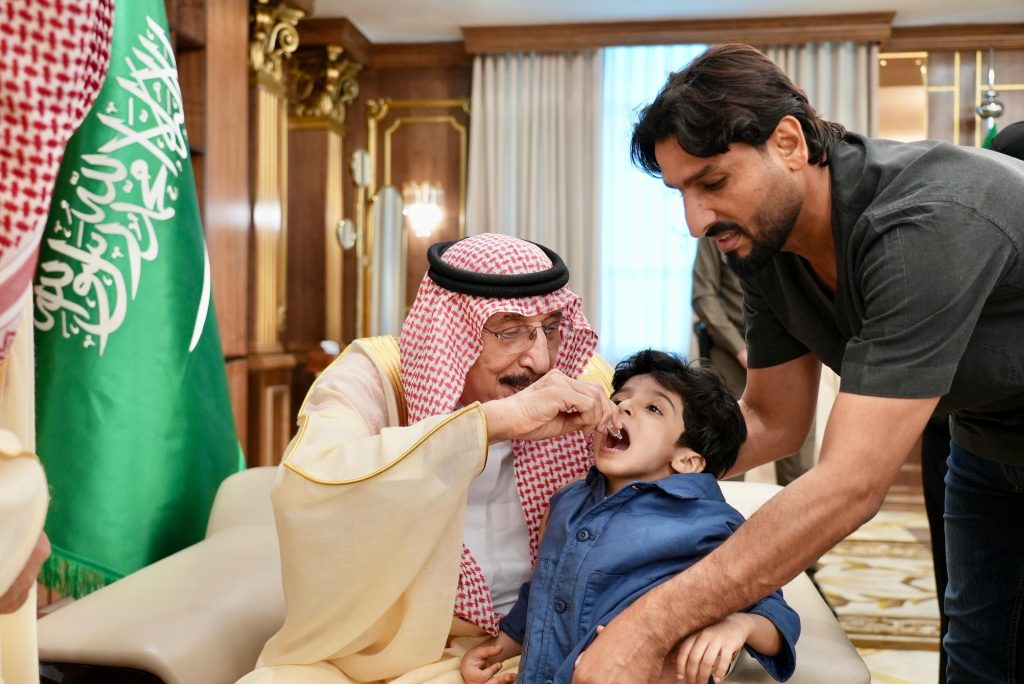 دشّن صاحب السمو الملكي الأمير محمد بن ناصر بن عبدالعزيز أمير منطقة جازان، في مكتبه اليوم، حملة التطعيم ضد شلل الأطفال التي يشرف على تنفيذها فرع وزارة الصحة بجازان.