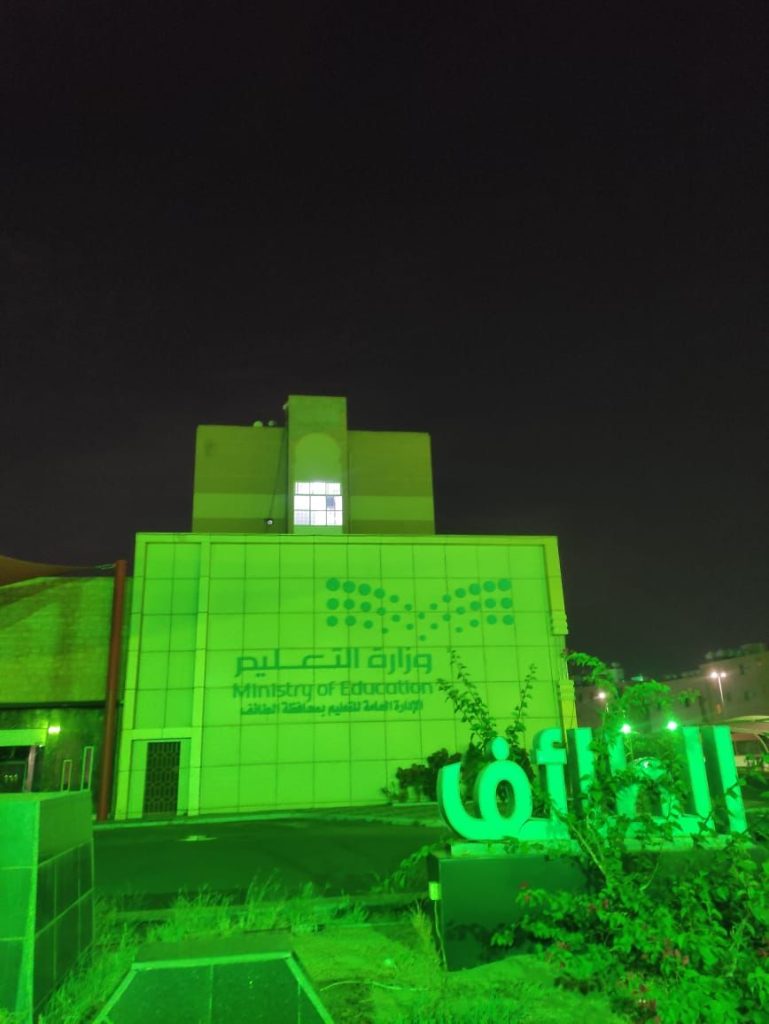 اكتست مباني الإدارة العامة للتعليم بالطآئف ومدارسها،باللون الأخضر وبشعار يوم التأسيس احتفالاً وابتهاجًا بيوم التأسيس.