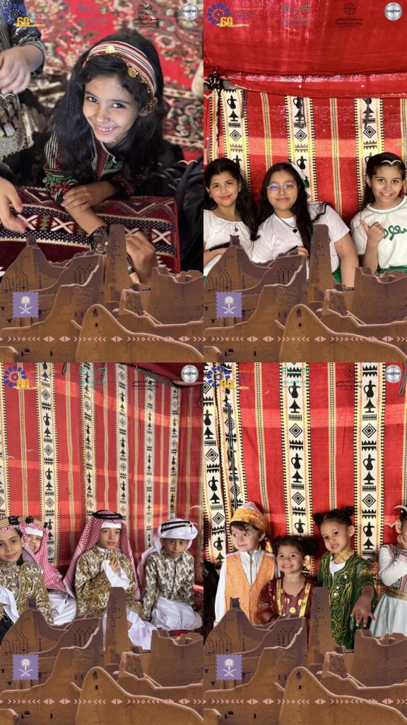 وفي إطار دمج التعليم بالهوية الوطنية، حرصت مدارس دوحة الجزيرة على تنظيم أنشطة ثقافية بلغة عالمية تناولت مسيرة التأسيس. قدّمت الطالبات عروضًا تقديمية ومسرحيات وأداءات درامية، بالإضافة إلى كتابة مقالات وقصائد شعرية باللغتين العربية والإنجليزية، تعبيراً عن ارتباطهن العميق بهذا الوطن العظيم. تألقت الطالبات بأزيائهن التراثية، كما أبدعن في تجسيد الشخصيات التاريخية التي شكّلت حجر الأساس في بناء الدولة، مستعينات بتقنيات حديثة لإعادة إحياء التراث في قلوب الأجيال الجديدة. وقد كانت الفعاليات بمثابة رحلة حية عبر الزمن، تسهم في تعزيز الفهم العميق لمراحل التأسيس وترسيخ القيم الوطنية في نفوس الطالبات.