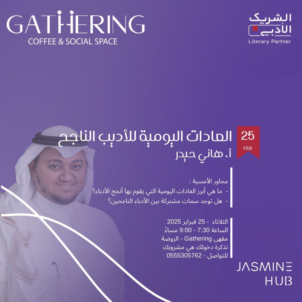 للإجابة عن هذه الأسئلة، تُنظّم جلسة أدبية مميزة بعنوان “العادات اليومية للأديب الناجح”، يستضيفها الأستاذ هاني حيدر،حيث سيتم استعراض أبرز الممارسات التي ساعدت أشهر الأدباء في مسيرتهم الإبداعية.