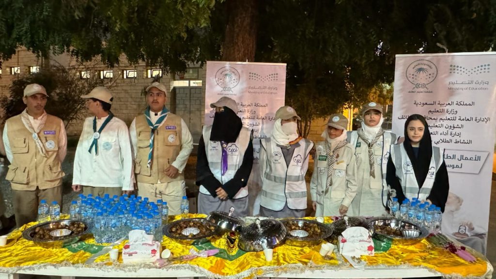 تواصل كشافة الإدارة العامة للتعليم بمحافظة الطائف، العمل التطوعي بتوزيع وجبات إفطار صائم على قاصدي بيت الله الحرام من المعتمرين بميقات وادي السيل وكذلك الترحيب بهم بالورود و تقديم الخدمة التطوعية باستقبال كبار السن المعتمرين بالعربات المتحركة وتستمر هذه الأعمال التطوعية لمدة ثلاثة أيام ، في إطار تأصيل روح العمل التطوعي لخدمة ضيوف الرحمن في نفوس الكشافين وفق رؤية 2030م