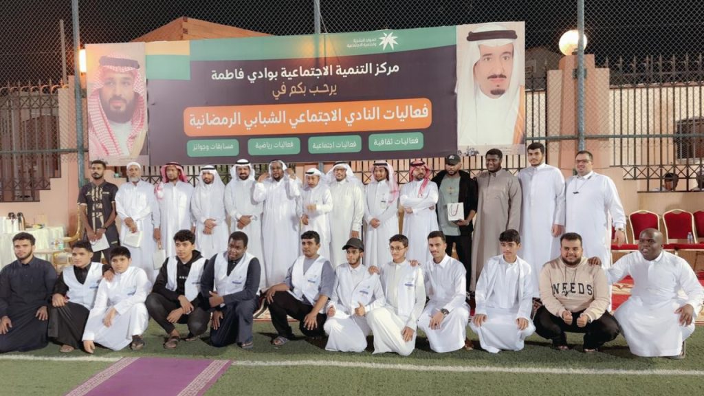 نظّم مركز التنمية الإجتماعية بوادي فاطمة فعاليات النادي الإجتماعي الشبابي الرمضانية بالشراكة مع جمعية سعادتي بمحافظة الجموم والتي انطلقت من تاريخ ١٤٤٦/٩/٤هـ واختتمت هذا المساء الاثنين الموافق ١٤٤٦/٩/١٧هـ بحضور مدير مركز التنمية الإجتماعية والذي اناب عنه الاستاذ : جعفر المتوكل المشرف الإجتماعي بالمركز هذا وقد تضمنت إقامة فعاليات ثقافية إجتماعية رياضية وقد أُقيمت المباراة النهائية والتي جمعت فريقي الوادي الاخضر وفريق النجوم من محافظة الجموم وانتهت بفوز فريق النجوم والذي توج بكأس البطولة والمركز الاول وحصل فريق الوادي الاخضر على كأس المركز الثاني والميداليات وبعد ذلك كرّمت الفرق المشاركة والفائزين بجوائز السحب وهي عبارة عن جهازين جوال وبعد ذلك اخذت الصور التذكارية من جانبه حضر اعضاء جمعية سعادتي ممثلين الجمعية الاستاذ : عايض اللقماني والاستاذ : سعد المولدوفي لقاء مع مدير فريق النجوم الفائز بالبطولة ، وجّه شكر وتقديره لمدير مركز التنمية الإجتماعية بوادي فاطمة على مايقوم به من خدمة في توفير البرامج الترفيهية لشباب المحافظة.