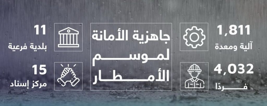 وأكدت الأمانة استمرار متابعة تنبيهات المركز الوطني للأرصاد ومركز إدارة الأزمات والكوارث، إلى جانب تفعيل الدور التوعوي عبر حسابات التواصل الاجتماعي ولوحات الطرق والشاشات، وذلك بنشر الرسائل التحذيرية لضمان سلامة السكان والزائرين، ودعم جهود الجهات المختصة خلال هطول الأمطار.