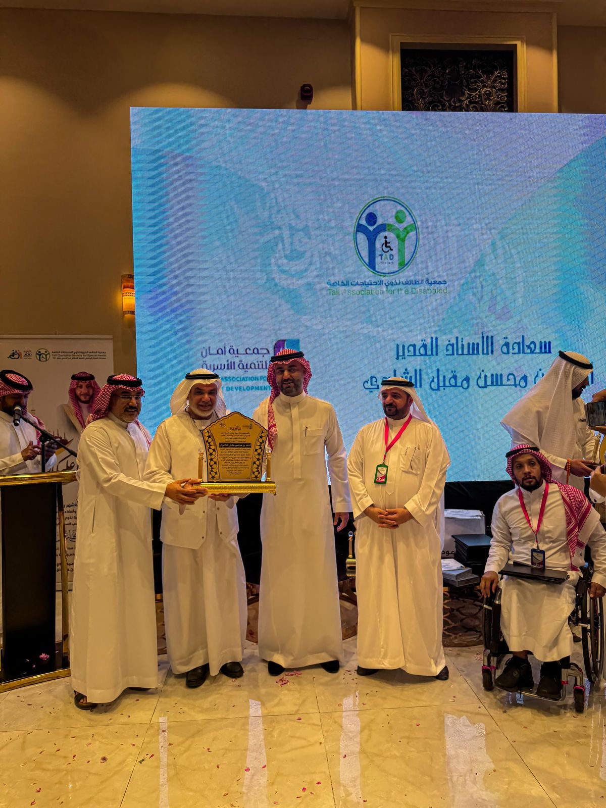 كما شكر صاحب السمو الملكي الأمير سعود بن نهار آل سعود محافظ الطائف الرئيس الفخري للجمعية على دعمه المستمر واهتمامه وحرصه على رعاية وتمكين ذوي الإعاقة بالمحافظة.