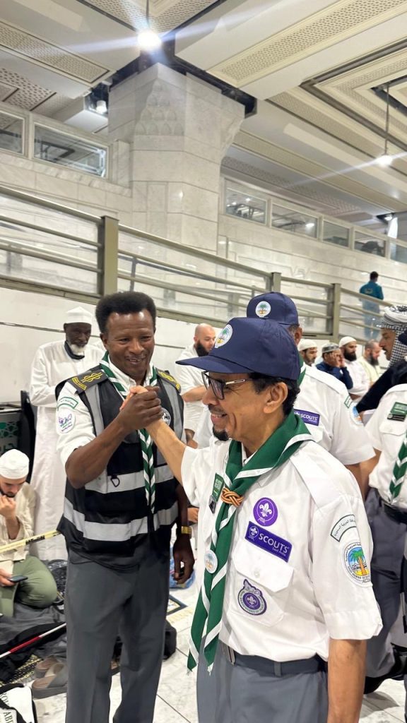 زار الدكتور عبدالرحمن إبراهيم المديرس الأمين العام لجمعية الكشافة العربية السعودية أثناء جولته في الحرم المكي الشريف عدد من منسوبي فريق كشافة شباب مكة المكرمة بجمعية مراكز الأحياء بمكة المكرمة المشاركين في خدمة المعتمرين والزور في موقعهم بالحرم المكي الشريف حيث التقى قائد عام الفريق المهندس بكر إبراهيم التمبكتي و القادة والكشافين والمرشدات المشاركين بالتعاون مع قواة أمن الحرم الشريف العاملين في إرشاد المصلين والمعتمرين ومساعدتهم في أداء نساكهم بكل يسرو سهولة