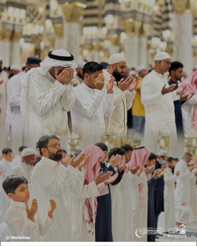 والمسجد النبوي، حيث شهدَ الحرمان تدفقًا كثيفًا من المصلين والمعتمرين وسط منظومة من الخدمات الإثرائية المتكاملة وفّرتها الرئاسة ووكالاتها المتخصصة في الحرمين_الشريفين؛ إثراءً لتجربة الزائرين والقاصدين.