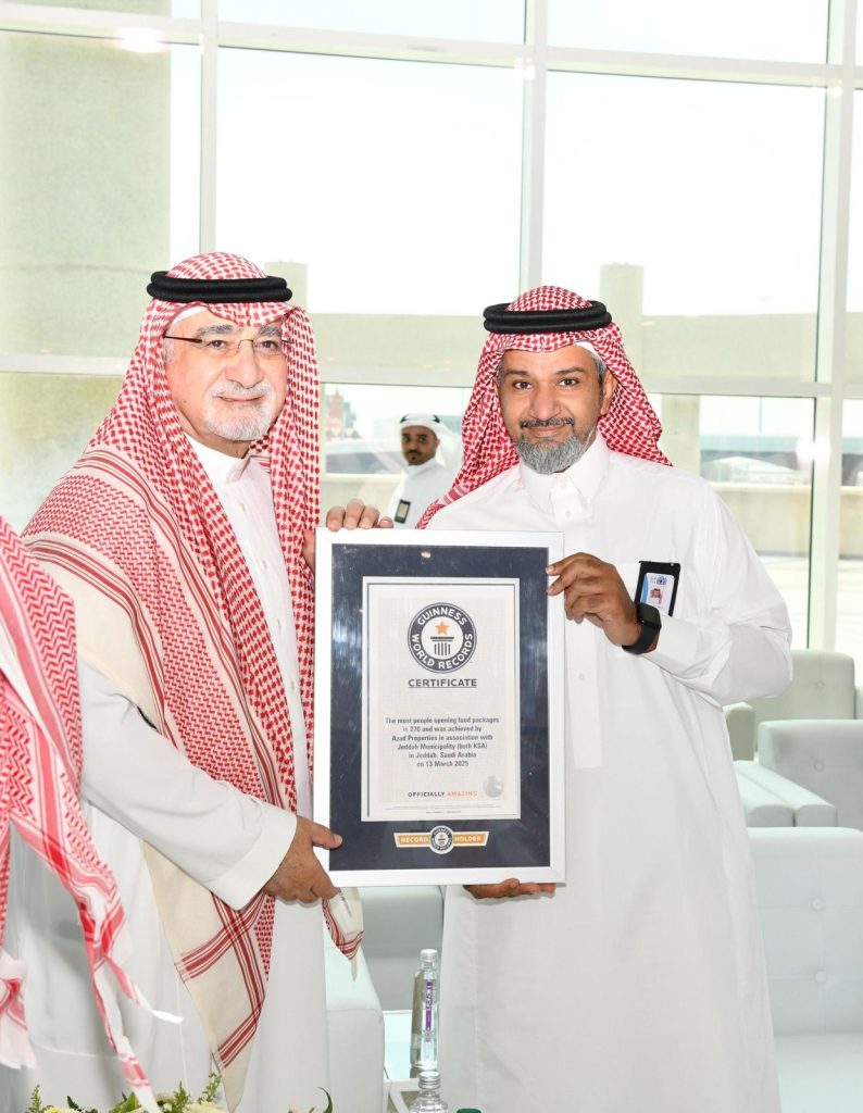 تسلم معالي أمين محافظة جدة الأستاذ صالح بن علي التركي شهادة دخول أمانة جدة موسوعة غينيس للأرقام القياسية للمرة الثالثة، في إنجاز جديد يُجسد التزام الأمانة بتعزيز مفاهيم المسؤولية المجتمعية وابتكار المبادرات النوعية ذات الأثر المستدام.
