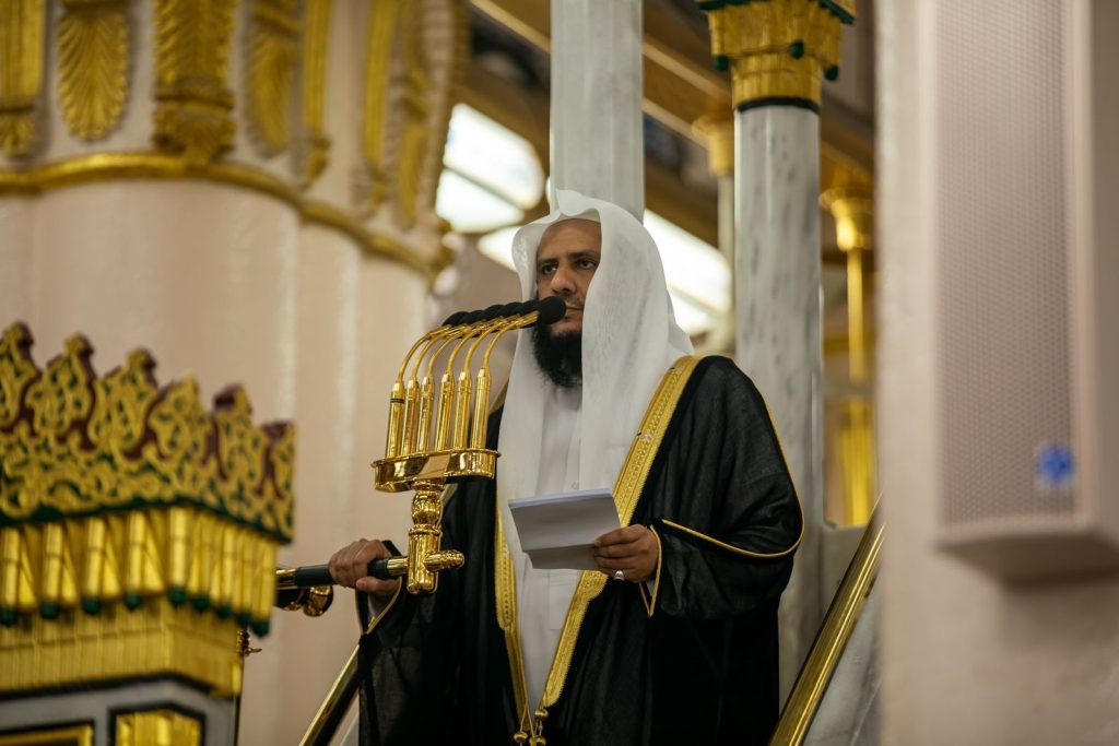 أم فضيلة الشيخ الدكتور خالد بن سليمان المهنا المصلين لصلاة الجمعة بالمسجد النبوي الشريف