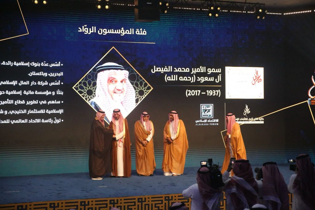 الأمير سلمان بن سلطان بتسليم درع “صالح كامل” وشهادة التكريم التقديرية شخصيًا لنجله صاحب السمو الملكي الأمير عمرو الفيصل، وذلك بحضور الأستاذ عبدالله صالح كامل، رئيس مجلس أمناء منتدى البركة للاقتصاد الإسلامي، والأستاذ محيي الدين صالح كامل، عضو مجلس الأمناء.