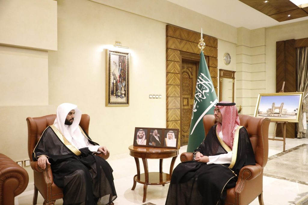 أستقبل صاحب السمو الأمير سعود بن عبدالله بن جلوي، محافظ جدة، في مكتبه اليوم، فضيلة رئيس المحكمة الجزائية بالمحافظة الشيخ فيصل بن فهد الزهراني.