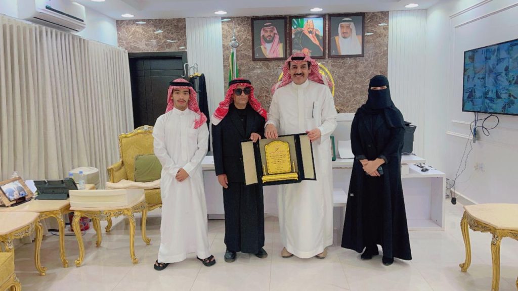 كرم سعادة محافظ طريف الإستاذ بدر بن نجر الصقر بمكتبه هذا اليوم الحرفي خلف شمران العطيفي على جهوده المبذوله في تحدي الإعاقة