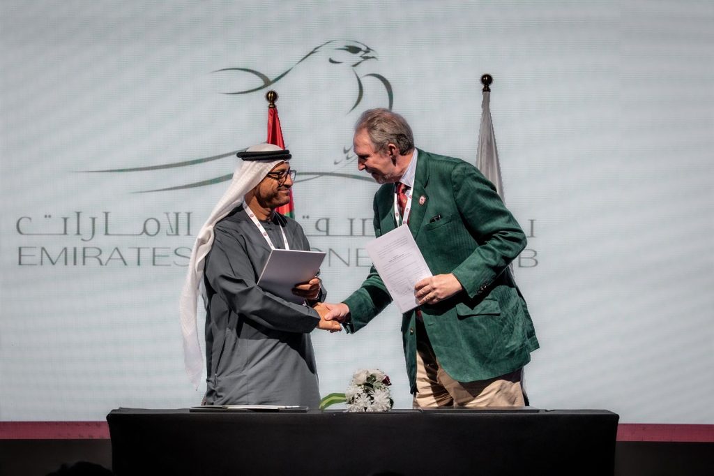 قال معالي ماجد علي المنصوري بهذا الهدف عن توقيع مذكرة تفاهم بين نادي صقاري الإمارات والمجلس الدولي على الصيد البرية، لاستخدام تعزيز التعاون في المشاريع، التمتع بالحقوق الثقافية للصقارة، وتنسيق تنظيم الفعاليات التي تساهم في الاستدامة وتمتع بالحياة البرية.