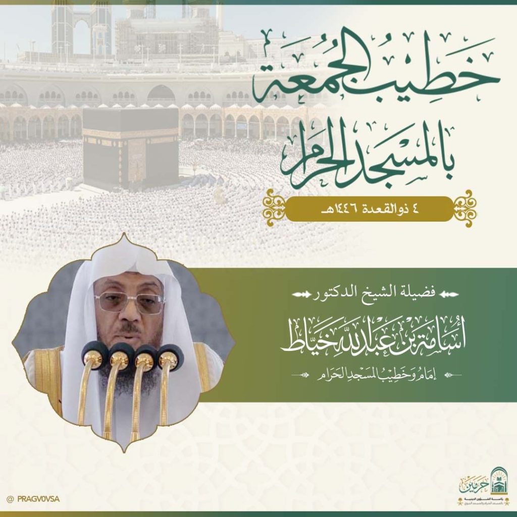 حيث سيكون خطيب الجمعة في المسجد الحرام فضيلة الشيخ الدكتور اسامة خياط