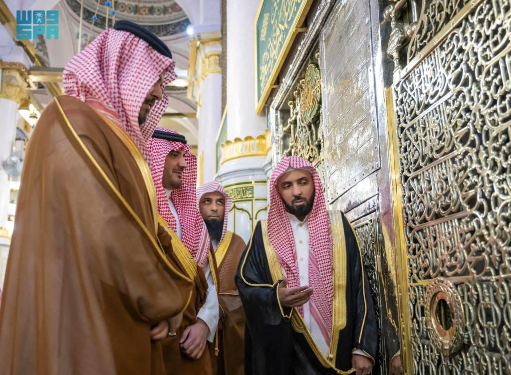 وأدى سمو وزير الداخلية الصلاة في الروضة الشريفة، وتشرف بالسلام على رسول الله ﷺ، وعلى صاحبيه الكريمين رضي الله عنهما، وذلك في إطار الزيارات الرسمية التي يقوم بها سموه لمتابعة عدد من المهام والمشروعات في المنطقة