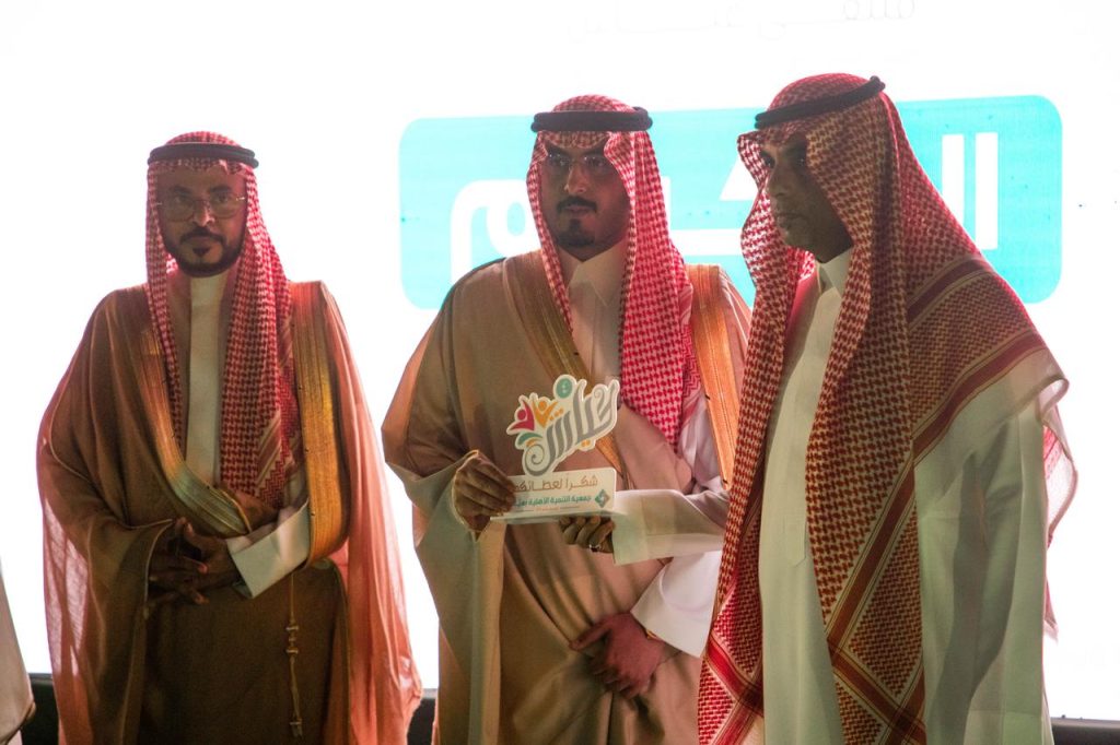 وفي نهاية الحفل قدمت جمعية التنمية الأهلية بعياش درعاً تذكارياً لراعي الحفل .