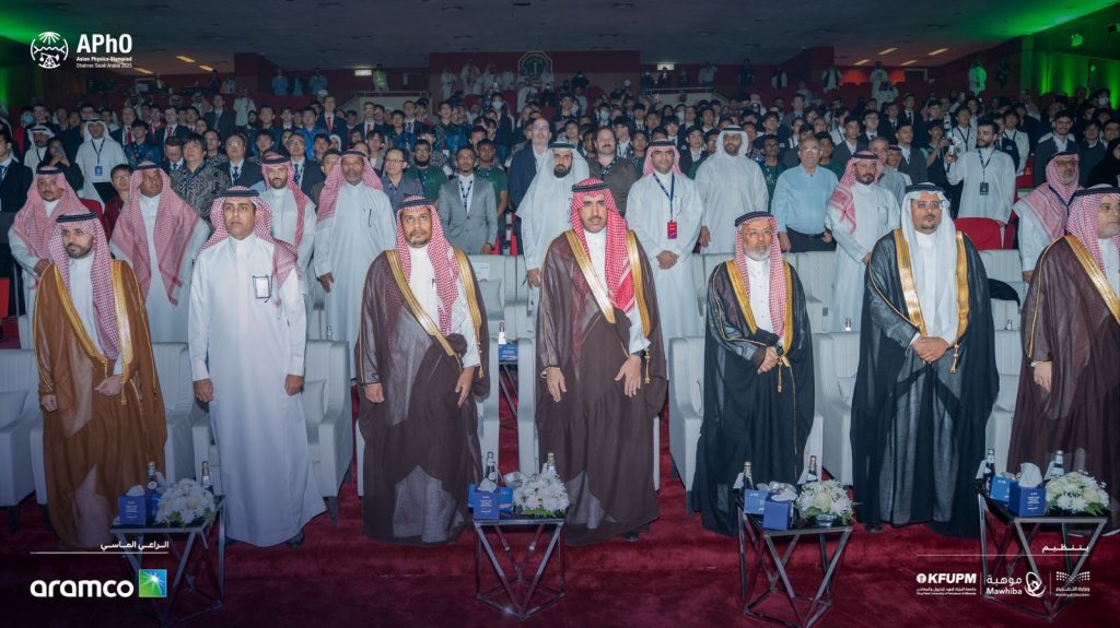 أُطلق اليوم في مدينة الظهران أولمبياد الفيزياء الآسيوي (APhO 2025)، بتنظيم من وزارة التعليم ومؤسسة موهبة؛ تحت شعار: “معًا نولد طاقة المستقبل”، *بمشاركة منتخبات 30 دولة وعدد 240 طالبا بحضور وكيل الوزارة للتعليم العام د. حسن بن محسن خرمي وأمين مؤسسة موهبة المكلف د. خالد الشريف ووكيل جامعة الملك فهد للبترول والمعادن د. مسفر الزهراني و رئيس أولمبياد الفيزياء الآسيوي الدكتور كويك ليونغ تشوان.