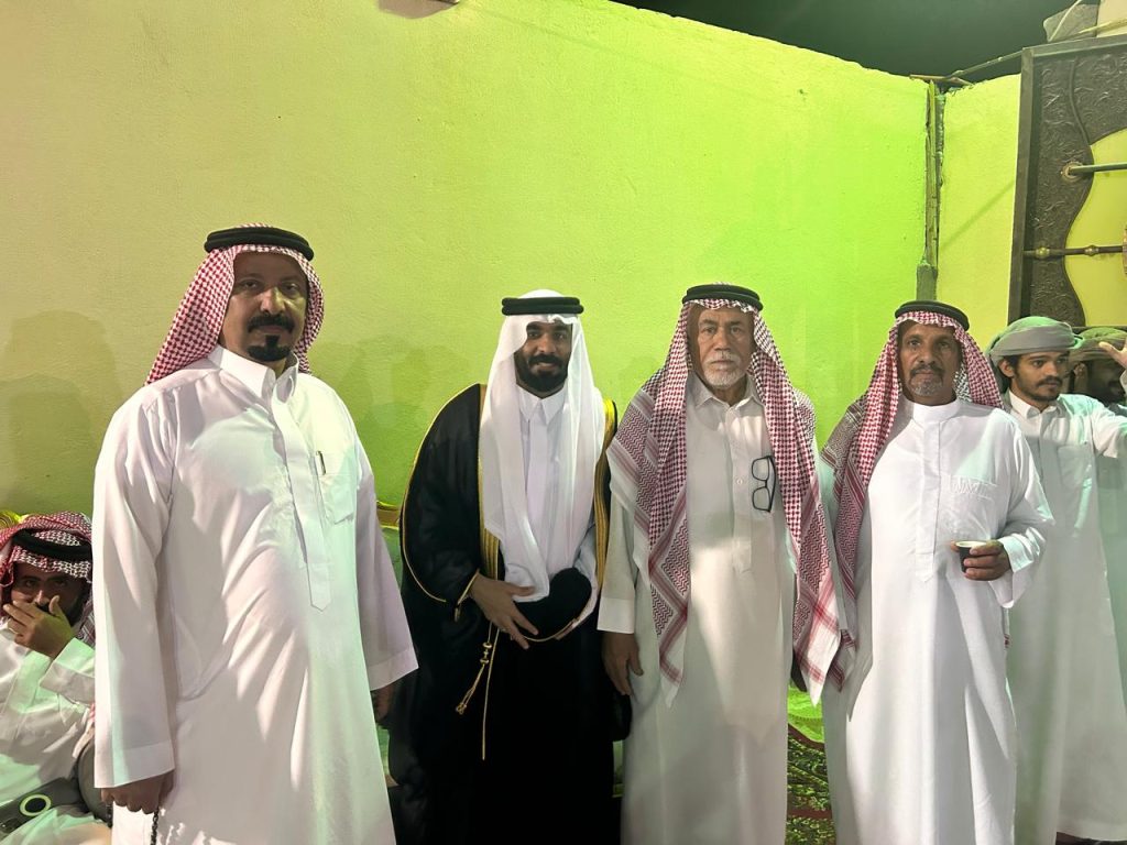 وقد انتهزنا فرصة عمل لقطة تذكارية بجانب العريس والى جانبنا الشيخ حمد بن مبارك بن دلباح الصيعري والاخ عوض بن عايض بن عدان الصيعري ..