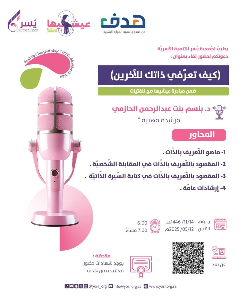 ضمن الأنشطة والبرامج والفعاليات التي تقوم بها جمعية يسر للتنمية الأسريّة بمكة المكرمة