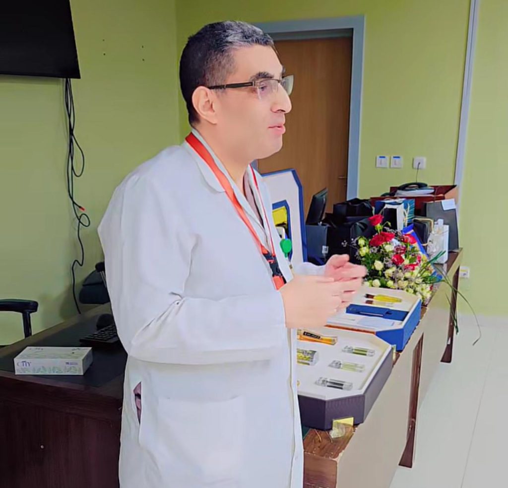 وقد قدم مدير مستشفى العارضة العام الشكر والتقدير للدكتور جورج كامل على ما بذله من اهتمام ومتابعة دائمة للمرضى منوهاً بتعاونه ايضاً مع زملائه في المستشفى على الصعيد الطبي والاداري ايضاً كما أشاد مدير مستشفى العارضة العام بجهود منسق الاحتفاء الأستاذ دغشر عياشي في الإعداد والتنسيق .