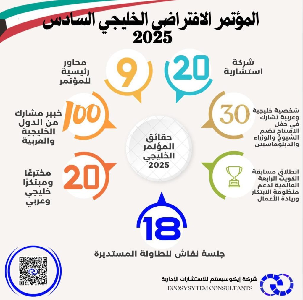 ينطلق المؤتمر الافتراضي الخليجي السادس، تحت شعار التكنوالابتكار وريادة الأعمال والذكاء الاصطناعي نحو التنويع الاقتصادي، وذلك يوم الإثنين الموافق السادس والعشرين من مايو 2025، والذي يستمر لمدة يومين حتى السابع والعشرين من مايو من الساعة العاشرة صباحًا وحتى الثامنة مساءً بتوقيت الكويت.