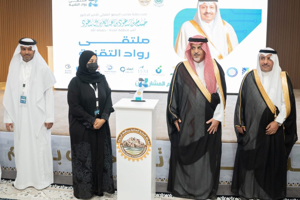تحت رعاية صاحب السمو الملكي الأمير الدكتور حسام بن سعود بن عبدالعزيز أمير منطقة الباحة دش محافظ المخواة غلاب بن غالب أبوخشيم ملتقى رواد التقنية بحضور محافظ قلوة علي بن احمد الشهري ومحافظ غامد الزناد صقر بن عبدالعزيز بن رقوش وعددًا من مديري الإدارات الحكومية والأهلية الذي نظمته الغرفةوالتجاربة بالمخواة بالشراكة مع البلدية والجوازات والكلية التقنية وجامعة الباحة والجامعة الإلكترونية وشركة أبعاد وشركة A-to -z للحلول الرقمية.