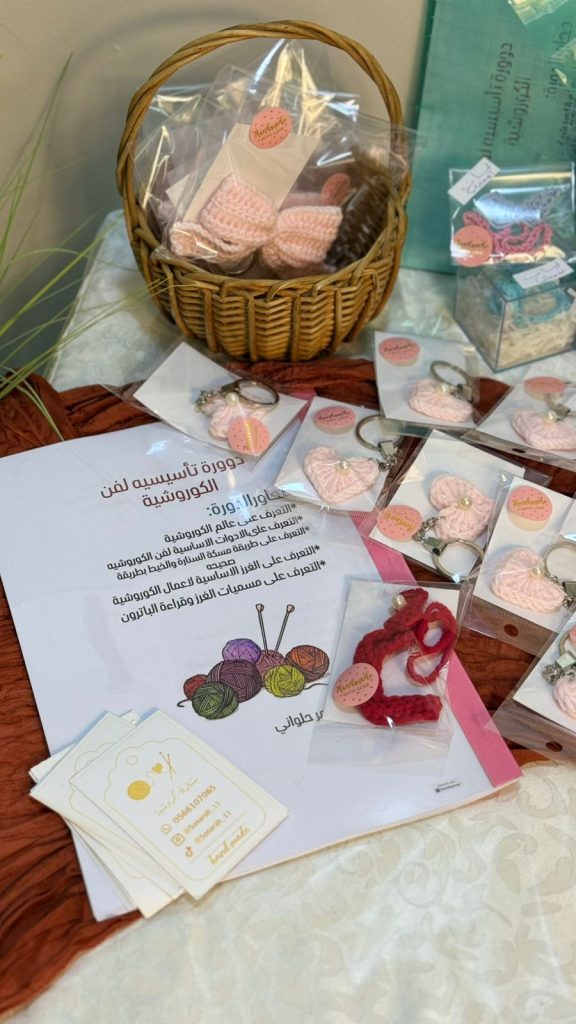 أما الورشة الثانية، فكانت بعنوان “تعليم الكروشيه”، بإشراف الأستاذة سمر حلواني، حيث استعرضت خلالها أساسيات هذا الفن اليدوي، من أدوات العمل إلى الغرز الرئيسية وطرق قراءة الباترون، مع تطبيقات عملية تساعد المشاركات على إنتاج أولى القطع اليدوية.