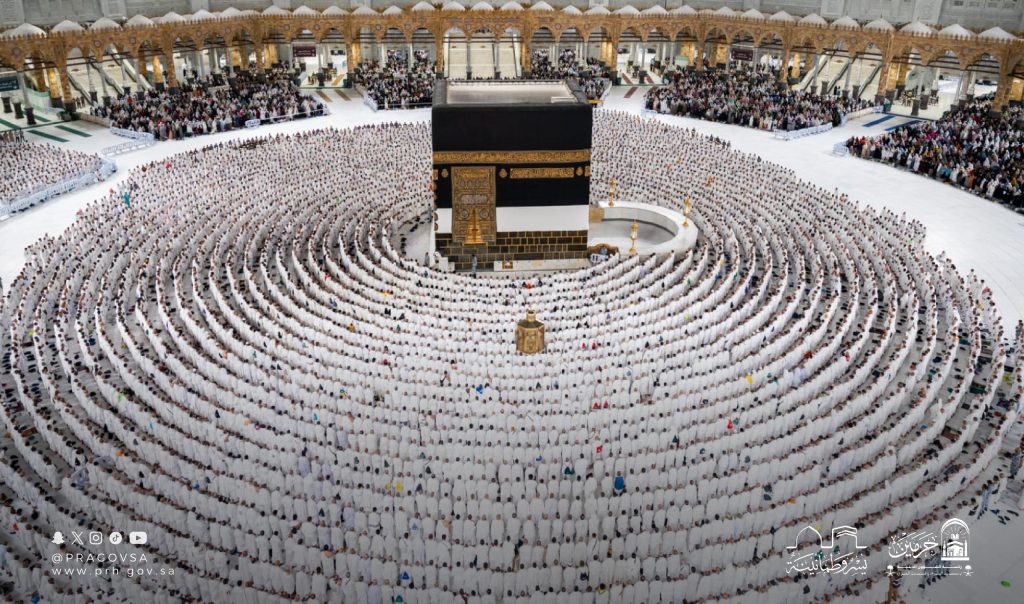 وثّقت رئاسة الشؤون الدينية بالمسجد الحرام والمسجد النبوي عبر عدستها اللحظات الإيمانية لضيوف الرحمن في مشاهد روحانية في المسجد الحرام وضيوف الرحمن في ملابس الإحرام البيضاء حيث توحدث القلوب وصفوف المصلين تنبض بالطاعة في مشهد ايماني مهيب يبعث السكينة في النفوس، حيث توجه ضيوف الرحمن بسكينة الى ساحات المسجد الحرام وقد تزينوا ببياض الإحرام، في لوحة روحانية تجسّد أعظم معاني الإيمان والخشوع.