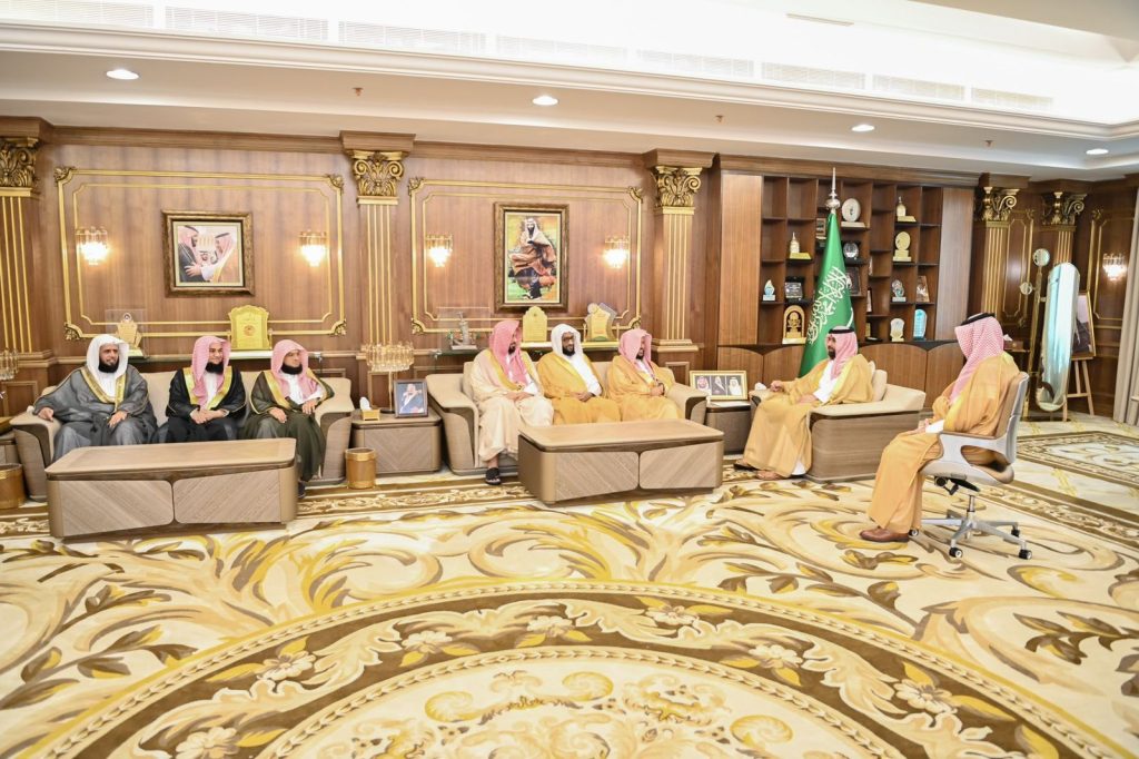 في بداية الاستقبال رحَّب سموه، بفضيلة رئيس محكمة الاستئناف بالمنطقة وأصحاب الفضيلة القضاة، وشكرهم على التهنئة، راجيًا لهم العون والتوفيق في القيام بالمهام الموكلة إليهم، منوهًا بالدور الكبير الذي ينفذه السلك القضائي، والخدمات التي يقدمها لأبناء المنطقة والمقيمين بها.