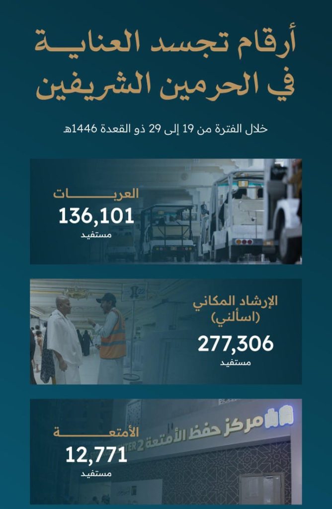 وأكدت الهيئة أن هذه الأرقام تعكس التزامها التام بتوفير أعلى معايير الخدمة والراحة في المسجد الحرام والمسجد النبوي