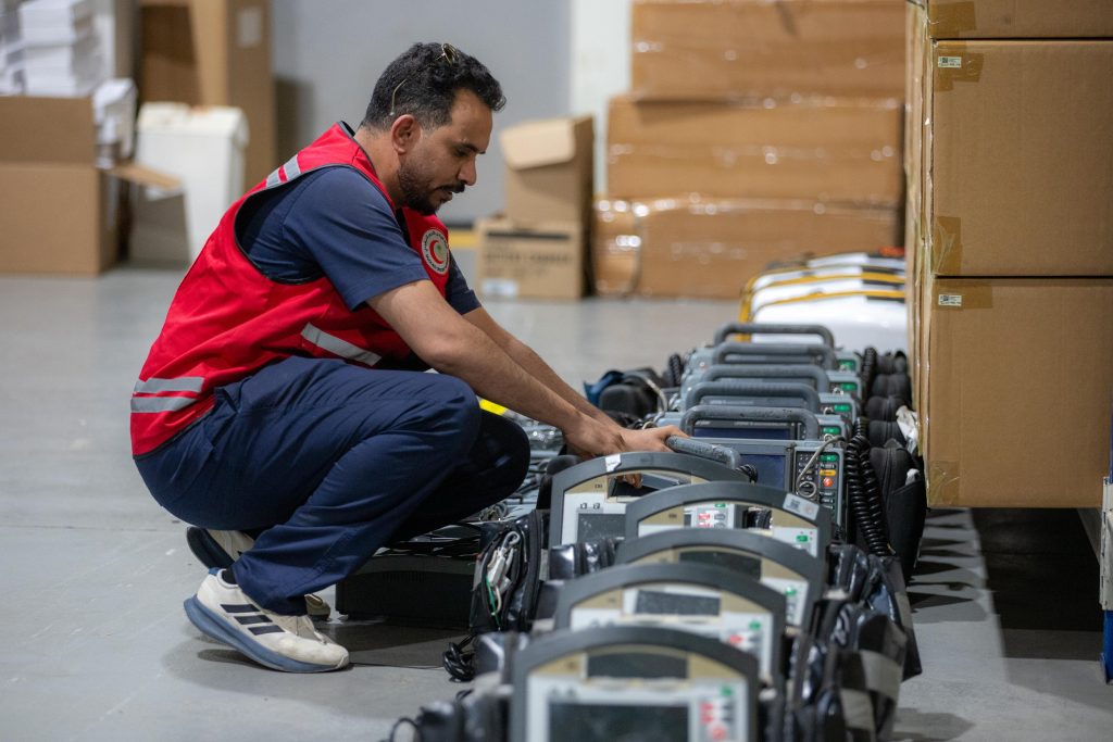 ضمن استعداداته الميدانية لموسم حج 1446هـ، جهزت هيئة الهلال الأحمر السعودي أكثر من 7500 صندوق من مستلزمات التموين والأدوية الطبية، موزعة على ثلاث فئات رئيسية، وتحتوي على أكثر من مليوني قطعة طبية، لتزويد مركبات الإسعاف والآليات والحقائب الإسعافية المشاركة في الموسم. وتقوم وحدة الإمداد والتجهيز الطبي بتسليم هذه الصناديق مباشرة للفرق الإسعافية لتفريغها في سيارات الإسعاف، بما يضمن أعلى مستويات الجاهزية لتقديم الرعاية الإسعافية لضيوف الرحمن