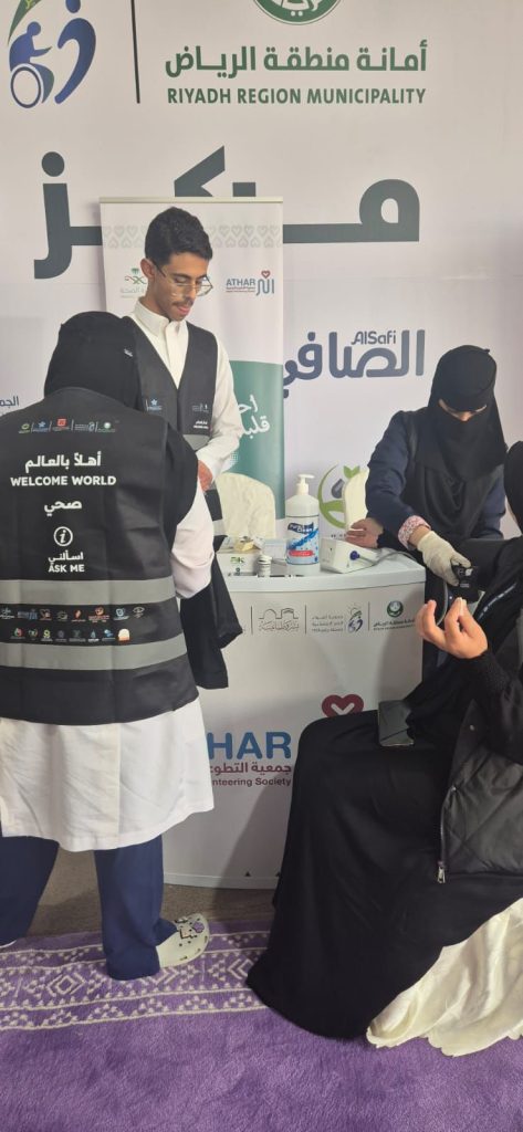وجاءت هذه المشاركة بالتعاون مع أمانة منطقة الرياض، وجمعية تكامل الصحية والتجمع الصحي الأول، وبمشاركة عدد من الفرق التطوعية والجهات والجمعيات المختصة التي أسهمت في تقديم خدمات التثقيف الصحي والتوعية لضيوف الرحمن.