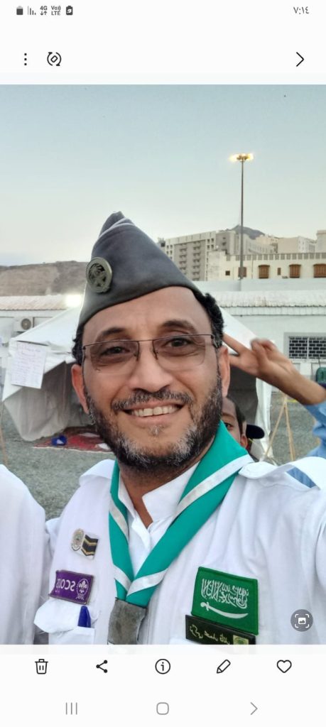 وأضاف القائد الكشفي المهندس بكر إبراهيم التمبكتي، قائد عام فريق كشافة شباب مكة المكرمة بجمعية مراكز الأحياء بمكة المكرمة: “من حسن حظي أنني عملت في خدمة الحجاج في المدينة المنورة ومكة المكرمة والمشاعر المقدسة، واكتسبت خبرتي من خلال العمل الكشفي منذ نعومة أظفاري في المرحلة الابتدائية. كانت مشاركاتي متنوعة؛ حيث خدمت ضيوف الرحمن، وفي المرحلة الثانوية كنا نعمل فترتين، قبل الحج وبعده، في المدينة المنورة. أما في المرحلة الجامعية، فقد شاركت مع الرئاسة العامة لرعاية الشباب حتى وصلت إلى مرحلة القيادة. شاركت مع جمعية الكشافة العربية السعودية كقائد فرقة في عدة مواسم، ومسؤول مسح وإرشاد، وقائد مركز إرشاد، حتى انضممت إلى فريق كشافة شباب مكة المكرمة بجمعية مراكز الأحياء وأصبحت قائدًا لمركز استضافة وإرشاد الحجاج التائهين التابع لمؤسسة جنوب آسيا مع المطوف عبدالعزيز سراج محمد حسين. كما أسسنا موقف حجاج البر في أنفاق الأمير متعب بحي الهجرة، وساهمنا في تخفيف معاناة الحجاج بالتعاون مع مجلس شركات حجاج الداخل (متحد). لقد وصلت إلى النضج الكشفي الذي ساعدني على المشاركة والعمل في الجمعيات المتخصصة في خدمة حجاج بيت الله الحرام”.