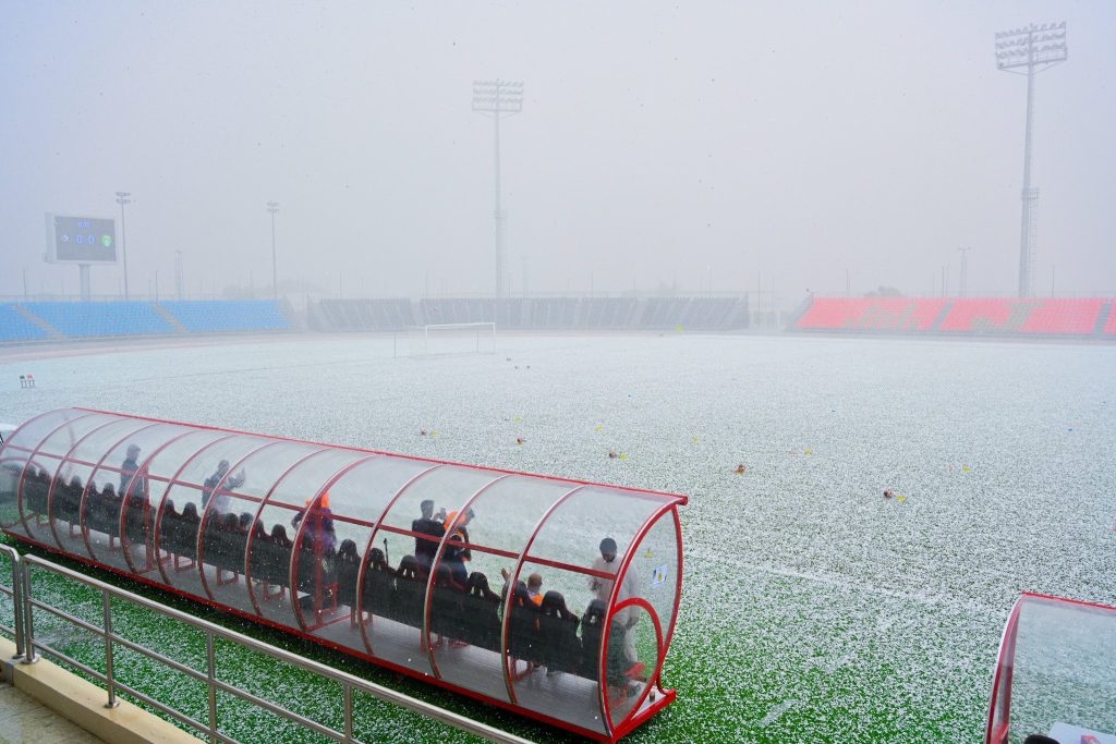 تداول رواد مواقع التواصل الاجتماعي عبر منصة “إكس” فيديو وصورا لملعب الجوف بالسعودية خلال تساقط الأمطار والثلوج ليكتسي الملعب باللون الأبيض.