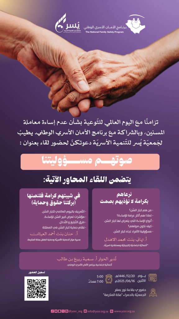 وتزامنًا مع اليوم العالمي للتّوعية بشأن عدم إساءة معاملة المسنين، وبالشراكة مع برنامج الأمان الأسري الوطني