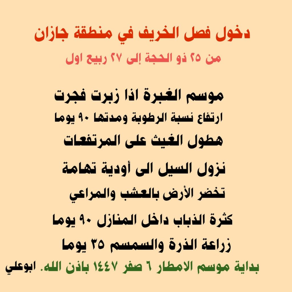 وبهذا يكون يوم غدا السبت الموافق ٢٥ ذو الحجة هو اول أيام فصل الخريف ومدته ٩١ يوما