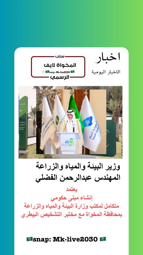 اعتمد وزير البيئة والمياه والزراعة المهندس عبدالرحمن الفضلي إنشاء مبنى حكومي متكامل لمكتب وزارة البيئة والمياه والزراعة بمحافظة المخواة، يتضمن مختبر التشخيص البيطري. هذا المشروع يهدف إلى تحسين الخدمات البيطرية والزراعية في المنطقة، مما يعزز من جودة الحياة ويدعم التنمية المستدامة في المحافظة.