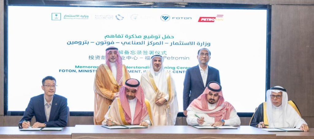 عبر تعزيز القطاع الصناعي وتوطين الصناعات النوعية، وقّعت كل من شركة بترومين، وشركة فوتون العالمية،ووزارة الاستثمار،والمركز الوطني للتنمية الصناعية، مذكرة تفاهم رباعية لبحث إنشاء مصنع متكامل لإنتاج المركبات التجارية في المملكة العربية السعودية