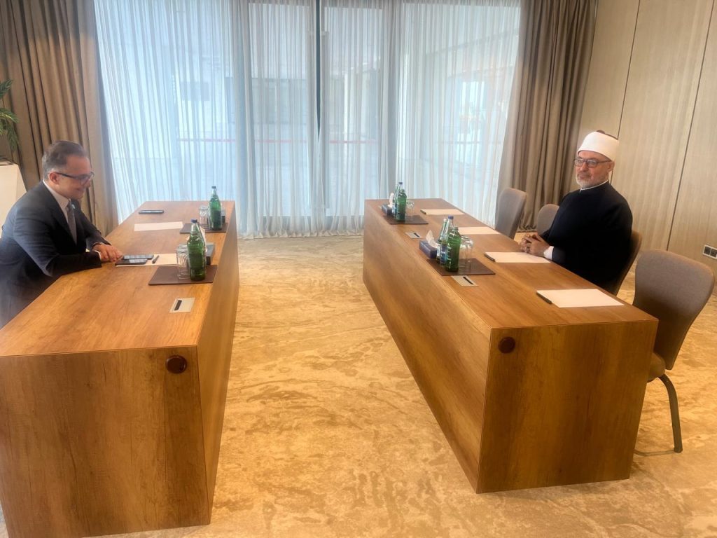 وفي بداية اللقاء، أعرب فضيلةُ المفتي عن خالص شكره وتقديره للحكومة الأذربيجانية على حسن الاستقبال وكرم الضيافة، قائلًا: “نشكر أذربيجان حكومةً وشعبًا على هذا الترحيب الحار. وأود أن أنقل تحيات دار الإفتاء المصرية وكل منسوبيها باعتبارها إحدى المؤسسات الدينية الكبرى”.