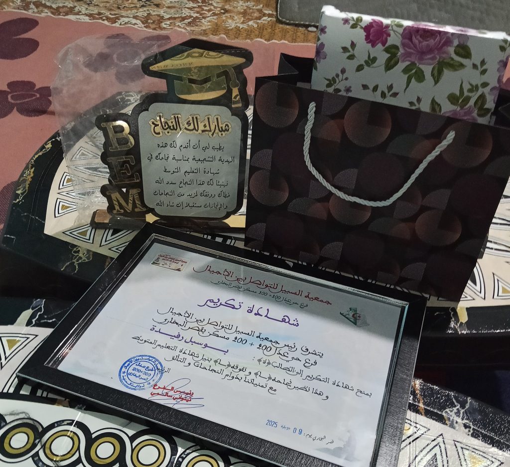 في مبادرة طيبة تهدف إلى دعم التفوق وتشجيع روح المثابرة لدى التلاميذ، نظمت جمعية السبيل – فرع عدل بقصر البخاري ولاية المدية يوم الاربعاء 09 يوليو 2025 تكريم خاص على شرف الطلبة الناجحين في شهادة التعليم المتوسط للسنة الدراسية (2024/2025)،