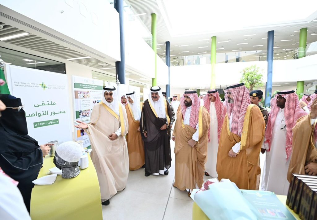 رعى صاحب السمو الملكي الأمير محمد بن عبدالعزيز بن محمد بن عبدالعزيز أمير منطقة جازان، بحضور صاحب السمو الأمير ناصر بن محمد بن عبدالله بن جلوي نائب أمير المنطقة اليوم، حفل افتتاح ملتقى “جسور التواصل 2025″، الذي ينظمه مركز الملك عبدالعزيز للتواصل الحضاري، بالتعاون مع الإدارة العامة للتعليم بالمنطقة بمقر بيت الثقافة بجازان.