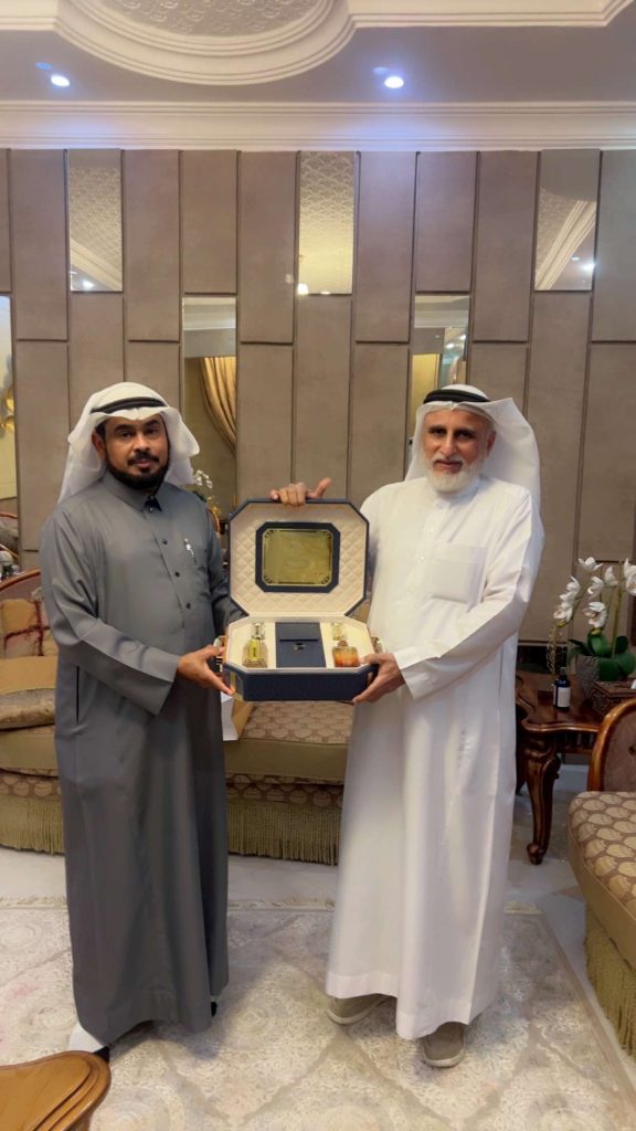 حمل الأستاذ عياشي معه خلال الزيارة هدية ثمينة وقيمة تعبر عن مدى تقديره وامتنانه، وكانت عبارة عن حقيبة أنيقة تحتوي على مجموعة مختارة من أفخر العطور والعود الفاخر. هذه الهدية تجسد المعنى السامي للمثل القائل: “الطيب لا يُهدي إلا طيبًا”، مما يعكس الأصالة والنبل في العلاقات الإنسانية.