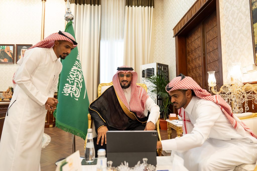 عبدالمنعم بن ياسين الشهري، في مكتبه بمقر الإمارة اليوم رئيس مركز الصم بالباحة عبدالعزيز الزهراني وأعضاء المركز.