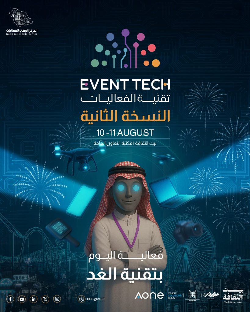 يُطلق المركز الوطني للفعاليات اليوم الأحد الموافق 10 أغسطس، ملتقى تقنية الفعاليات “Event Tech Meetup 2025” لتعزيز التحول الرقمي ودعم الابتكار المحلي، ويأتي ذلك ضمن النسخة السنوية الثانية من مبادرة تقنية الفعاليات “Event Tech 2025″، التي تستهدف تمكين رواد الأعمال والمبتكرين من مجالات التقنية، ودعم تطوير قطاع الفعاليات.