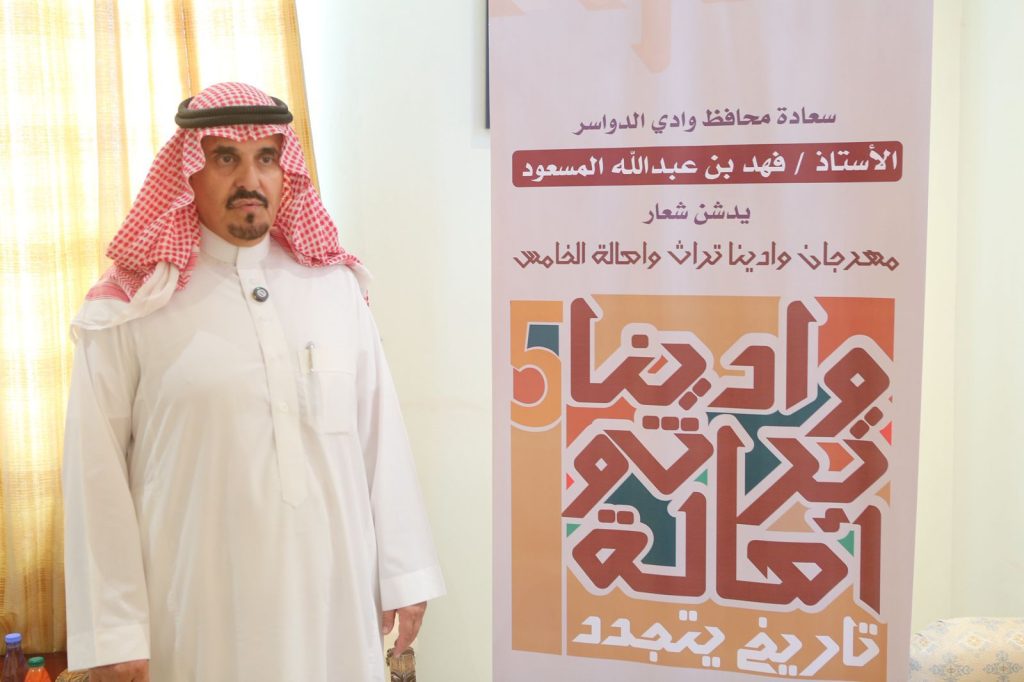 دشّن محافظ وادي الدواسر فهد بن عبدالله المسعود اليوم، بديوان المحافظة، شعار مهرجان “وادينا تراث وأصالة” في نسخته الخامسة، الذي تنظمه شركة إشراقة النجاح للاستثمار بالشراكة مع عدد من الجهات الحكومية والأهلية، على أن تنطلق فعالياته بالتزامن مع احتفالات اليوم الوطني.