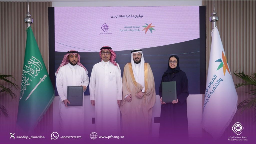 وقعت جمعية أصدقاء المرضى بالرياض مذكرة تفاهم مع وزارة الموارد البشرية والتنمية الاجتماعية يوم الخميس