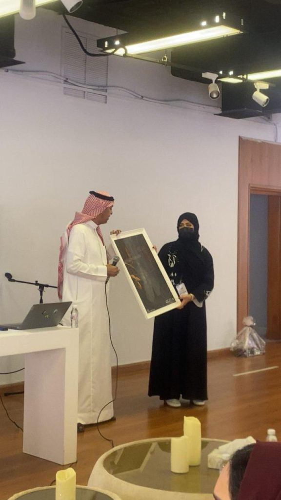 وقام مدير جمعية الثقافة والفنون بجدة الاستاذ محمد آل صبيح بتكريم الفنانة عبير البيشي