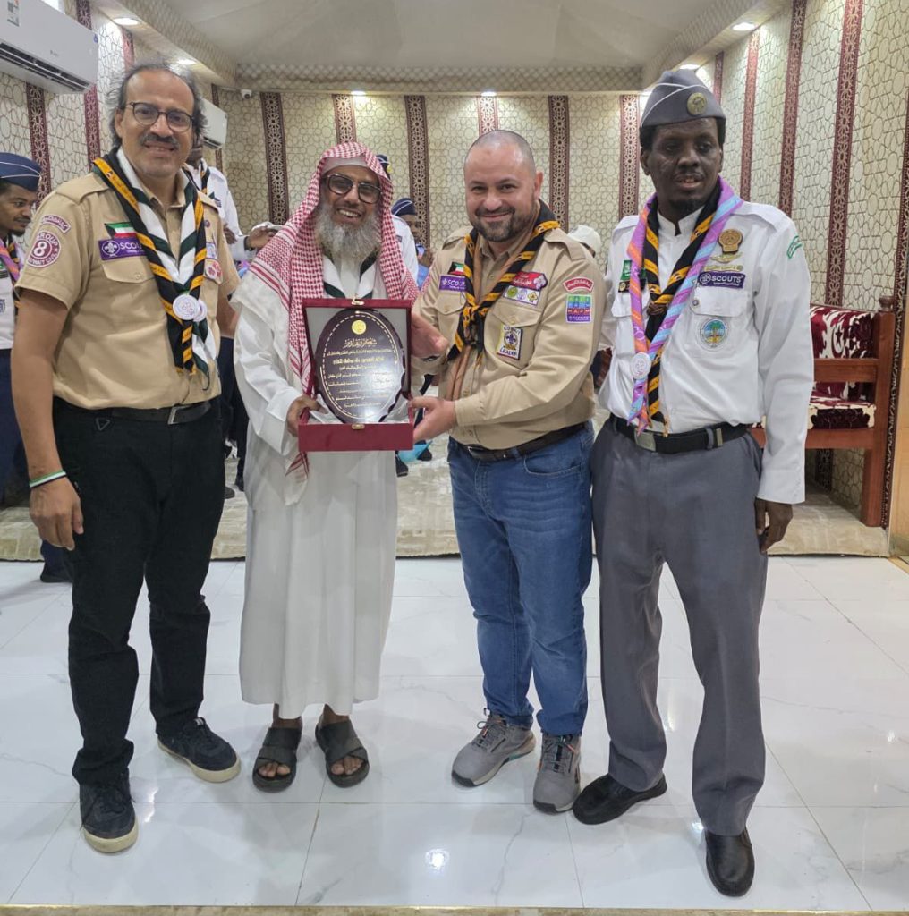 جاء ذلك خلال حفل السمرالذي أقيم ضمن برنامج زيارة الوفد الكويت الي مكة المكرمة ،الذي أقيم بقاعة الديوانية ، حيث قام مؤسس المجموعة الدكتور رشيدصابرحوارني وقائد المجموعة عامرمنيرصافي و مساعد قائد مجموعة النجوم الكشفية القائد حسن كامل الزالق بتسلم العضوية الشرفية للدكتورة عفاف محمد الحربي و المكرمين الآخرين هم الشيخ الدكتور المهندس خالد عبدالملك النهاري من مشروع تعظيم البلد الحرم والشيخ رشيد مرشود الحربي رئيس مجلس إدارة جمعية حفاوة ، والقائد الكشفي الإعلامي عثمان خليفة مدني والقائد الكشفي الاستاذعلي بكر هوساوي والقائد الكشفي المهندس بكر إبراهيم التمبكتي قائد عام فريق كشافة شباب مكة المكرمة بجمعية مراكز الأحياء بمكة المكرمة والقائد الكشفي التربوي تركي محمدبن يحي والقائد الكشفي التربوي عبدالرحمن محمد الثقفي ، ونوه القائد الكشفي التربوي عبدالرحمن محمد الثقفي ، في كلمة له بهذه المناسبة ببدور كشافة شباب مكة وبما تقوم به من جهود مجتمعية في خدمة مكة المكرمة وزوارها ودورهم الفاعل في اعداد برنامج استضافة كشافة مجموعة النجوم الكشفية بدولة الكويت التي تقوم بزيارة للمملكة العربية السعودية وترتيب العديد من المناشط والبرامج الكشفية لهم وزيارتهم لعدد من مناطق المملكة والمؤسسات الاهلية والحكومية ذات العلاقة، وقدم الثقفي جزيل الشكر والتقدير لكشافة دولة الكويت ممثلة في مجموعة النجوم الكشفية على هذا التكريم المتمثل في العضوية الشرفية، كما توجه بالشكر والتقدير لفرع جمعية مراكز الأحياء بالعاصمة المقدسة على هذا التكريم وهذه الحفاوة وحسن الضيافة التي اعدت للأخوة الأشقاء من كشافة الكويت ممثلة في كشافة مجموعة النجوم ، وهو ما يؤكد أصالة الكرم المكي مع زوار بيت الله الحرام وضيوف الرحمن .. وقد أقيم الحفل بمقر جمعية مراكز الأحياء بالعاصمة المقدسة .