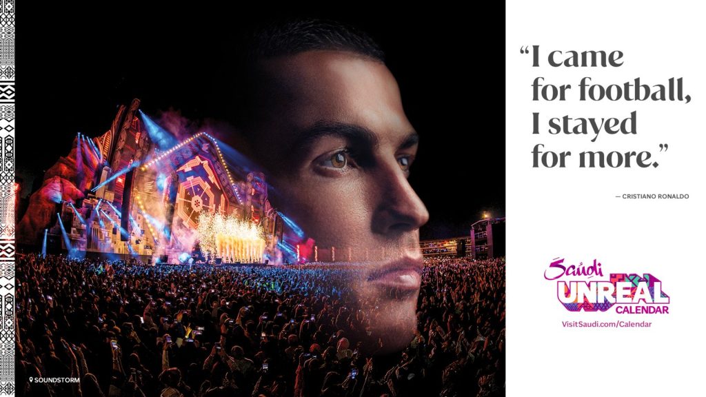 كما قال كريستيانو رونالدو: “أعتز كثيراً بمرافقة السعودية في رحلتها الطموحة نحو ترسيخ موقعها كمنصة عالمية كبرى لاستضافة أبرز الفعاليات الرياضية الدولية، وهي خطوة تعكس رؤيتها الاستراتيجية المتجددة، وما يبعث على الإعجاب هو حرص السعودية على أن يكون تقدمها المستقبلي متجذراً في أصالتها الثقافية وقيمها الراسخة لتجسد نموذجاً فريداً يجمع بين الهوية الوطنية والانفتاح على العالم”