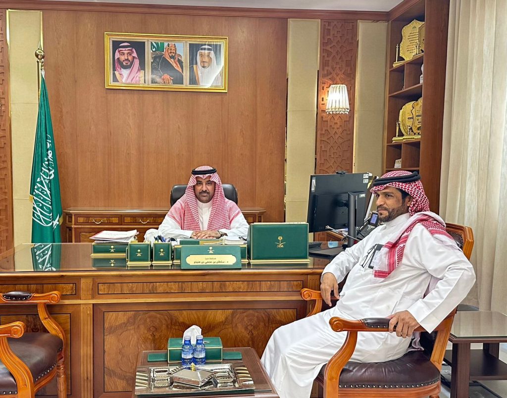 استقبل محافظ صبيا الدكتور سلطان بن عجمي بن منيخر، في مكتبه بالمحافظة اليوم، رئيس بلدية محافظة صبيا المعين حديثًا، المهندس محمد بن حمود نمازي.