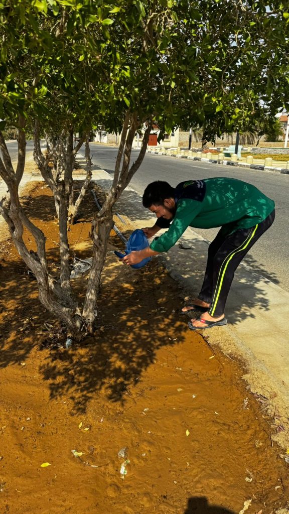 وتركزت المبادرة على متابعة حالة الشتلات المزروعة من خلال أعمال السقاية المنتظمة، وتحسين التربة، والعناية بالنمو النباتي بما يسهم في تعزيز استدامة التشجير. وأسهم المتطوعون بدور فاعل في سقي الشتلات، وتهيئة التربة، وتنظيف الأحواض الزراعية، بما يعكس وعيهم البيئي ورغبتهم في الإسهام بتحسين المشهد الحضري.